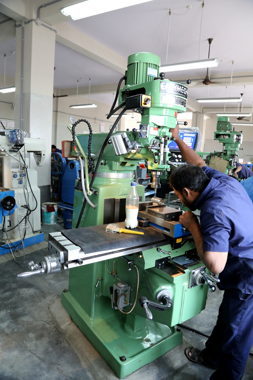 The unit is well equipped with the latest machinery, which includes 10 conventional lathe machines, 2 milling machines, 4 CNC lathe machines, 5 CNC milling machines (4-axis and 3-axis), surface grinders, cylindrical grinders, rotary drilling machines, a 1300-bar booster pump (for hydraulic testing of components), and a 400-bar booster pump (for high-pressure pneumatic testing of components).