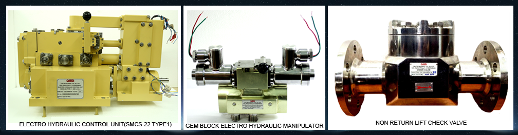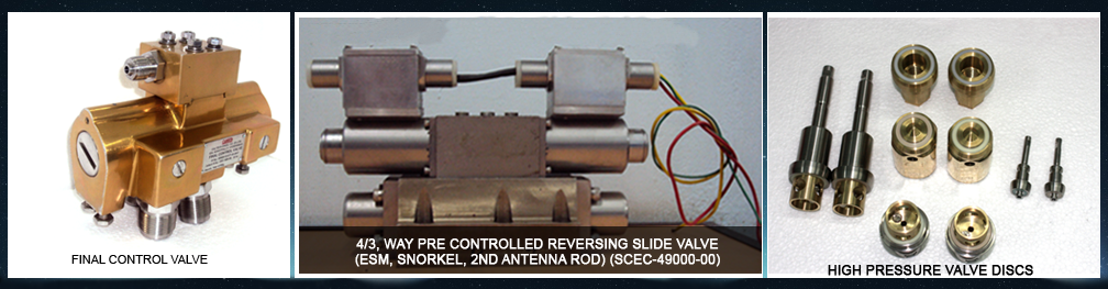 Hydraulic Manipulators and Distributors of various diameters and sizes, with and without solenoid control, used in several on board applications for Submarines