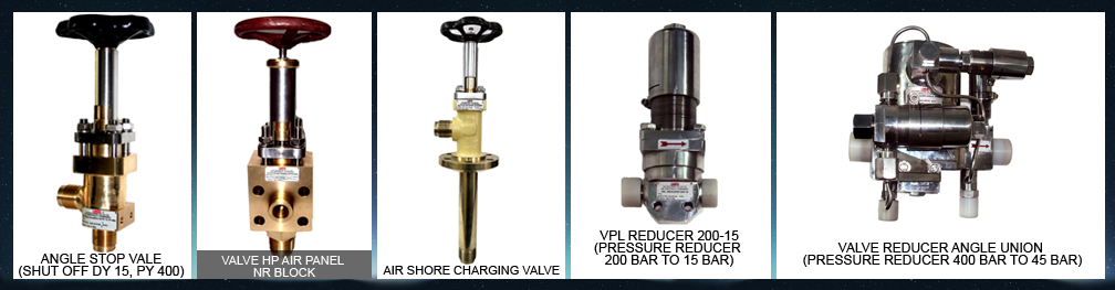 400 Bar H.P Air Valves such as Air Shore Charging Valve, Tank Side Blow Valve and NRVs for H.P. Air System used on board the EKM & HDW class Submarines