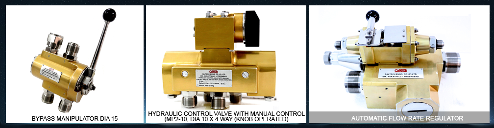 Time Delay Valve 400 Bar & 6 seconds Time delay Control (Adjustable) along with 400 bar spool valve and Interlocking Valve which are used in operating Kingston Machines.