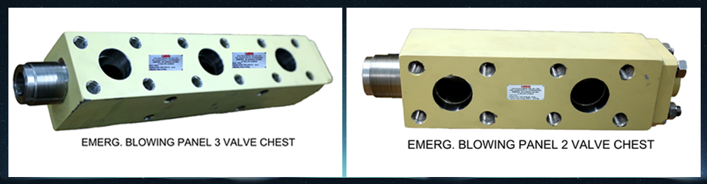 400 bar columns and valve Panels such as 3 valve chest, 2 valve chest, 12 Valve chest with or without 400 bar hand valves consisting of built in Non Return Valve.